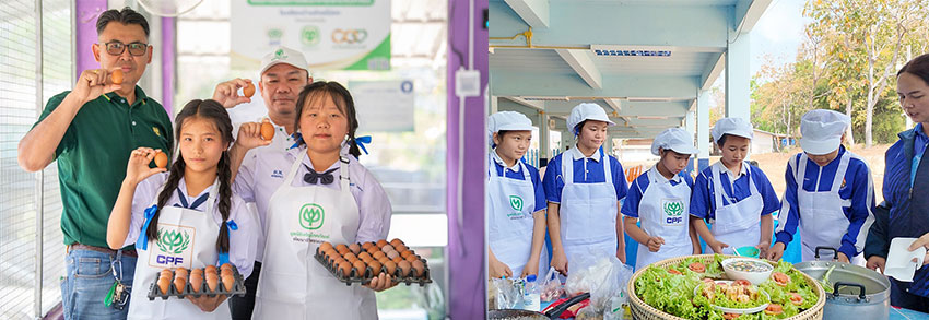 นายจอมกิตติ ศิริกุล กรรมการและเลขาธิการมูลนิธิเจริญโภคภัณฑ์พัฒนาชีวิตชนบท (ซีพี) เปิดเผยว่า เครือเจริญโภคภัณฑ์ มูลนิธิซีพี และซีพีเอฟ มุ่งขยายโอกาสให้โรงเรียนทั่วประเทศเข้าถึงแหล่งอาหารโปรตีนที่เพียงพอ เพื่อให้นักเรียนมีโภชนาการที่เหมาะสม อันเป็นรากฐานสำคัญของการเติบโตอย่างแข็งแรงและพัฒนาศักยภาพได้อย่างเต็มที่ โครงการเลี้ยงไก่ไข่ฯ ช่วยให้โรงเรียนสามารถจัดหาอาหารกลางวันจากไข่ไก่ที่สดใหม่ มีคุณภาพ ช่วยลดภาระค่าใช้จ่าย โดยโครงการฯ ไม่เพียงมุ่งเน้นการจัดหาอาหารกลางวัน ยังเป็นสื่อการเรียนรู้พัฒนาทักษะอาชีพด้านเกษตร ผ่านการเลี้ยงไก่ไข่ การบริหารจัดการฟาร์มขนาดเล็ก และการนำผลผลิตไข่ไก่มาจำหน่ายให้แก่ชุมชนในราคาที่เหมาะสม ไปจนถึงการแปรรูปผลิตภัณฑ์จากไก่ไข่เพื่อใช้บริโภคภายในโรงเรียนเพื่อสร้างรายได้หมุนเวียนกลับคืนสู่โรงเรียนและชุมชนอย่างยั่งยืน (Social Enterprise)