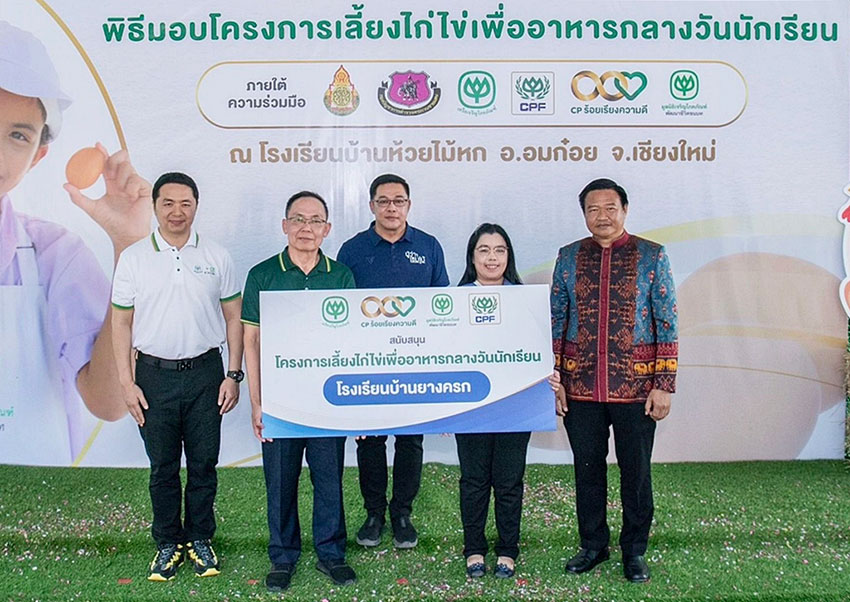 เครือเจริญโภคภัณฑ์ โดยมูลนิธิเจริญโภคภัณฑ์พัฒนาชีวิตชนบท (ซีพี) และ บริษัท เจริญโภคภัณฑ์อาหาร จำกัด (มหาชน) หรือซีพีเอฟ ร่วมส่งมอบโครงการเลี้ยงไก่ไข่เพื่ออาหารกลางวันนักเรียน แก่โรงเรียนบ้านห้วยไม้หก และโรงเรียนบ้านยางครก เพื่อสร้างเสริมภาวะโภชนาการและสุขภาพของเด็กและเยาวชนในถิ่นทุรกันดาร หนุนนักเรียนได้เรียนรู้ทักษะอาชีพติดตัว พร้อมสร้างคลังอาหารยั่งยืนในโรงเรียนและชุมชน โดยมี นายปรีชาพล พูลทวี นายอำเภออมก๋อย เป็นประธานในพิธี ณ โรงเรียนบ้านห้วยไม้หก อ.อมก๋อย จ.เชียงใหม่