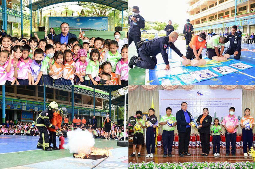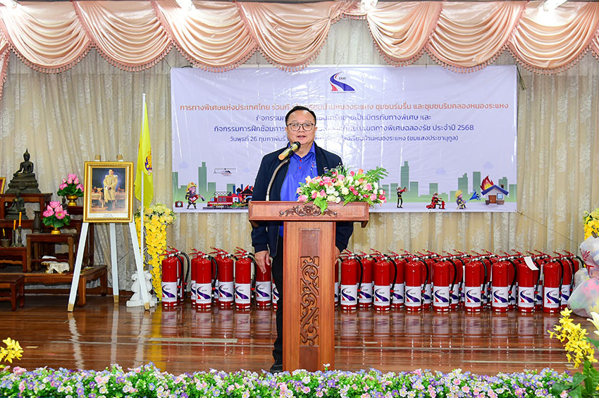 นายอเนก โคตรพรหมศรี ผู้อำนวยการฝ่ายกรรมสิทธิที่ดิน กทพ. กล่าวว่า ได้ตระหนักและให้ความสำคัญ ในการเสริมสร้างสังคมในพื้นที่รอบเขตทางพิเศษให้เกิดความเข้มแข็ง ความสามัคคี และส่งเสริมความสัมพันธ์อันดีให้เกิดขึ้นระหว่างการทางพิเศษแห่งประเทศไทยและชุมชนรอบเขตทางพิเศษ โรงเรียน และหน่วยงานอื่น ๆ รอบเขตทางพิเศษอย่างยั่งยืนลดพื้นที่เสี่ยง เพื่อให้ชุมชนช่วยดูแลพื้นที่รอบเขตทางพิเศษ โดยการจัดกิจกรรมการสร้างชุมชนเครือข่ายเป็นมิตรกับทางพิเศษ และกิจกรรมการฝึกซ้อมการป้องกันและระงับอัคคีภัย ทางพิเศษฉลอง ประจำปี 2568 ในวันนี้ ได้รับความร่วมมือจาก โรงเรียนบ้านหนองระแหง (ชมแสงประชานุกูล) ชุมชนร่มรื่น ชุมชนริมคลองหนองระแหง สำนักงานเขตคลองสามวา สถานีดับเพลิงบางเขน สถานีตำรวจนครบาลคันนายาว เข้าร่วมกิจกรรมการฝึกซ้อมป้องกันและระงับอัคคีภัย ซึ่ง กทพ. ต้องขอขอบคุณหน่วยงานต่าง ๆ ที่ให้ความร่วมมือเป็นอย่างดีมาโดยตลอด สำหรับกิจกรรมในครั้งนี้ กทพ. ได้จัดให้ความรู้วิธีการดับเพลิง การฝึกซ้อมขั้นตอนอพยพกรณีเกิดเหตุเพลิงไหม้ การปฐมพยาบาลเบื้องต้น การช่วยฟื้นคืนชีพ (First Aid & CPR) ให้กับชาวชุมชนรอบเขตทางพิเศษ ในการป้องกันและระงับอัคคีภัยรวมถึงให้ความช่วยเหลือในกรณีเกิดอัคคีภัย พร้อมทั้งได้มอบถังดับเพลิง จำนวน 40 ถัง อุปกรณ์กีฬาให้กับโรงเรียนบ้านหนองระแหง (ชมแสงประชานุกูล) มอบถังดับเพลิง จำนวน 10 ถัง ให้กับชุมชนร่มรื่น และมอบถังดับเพลิง จำนวน 10 ถัง ให้กับชุมชนริมคลองหนองระแหง อีกด้วย