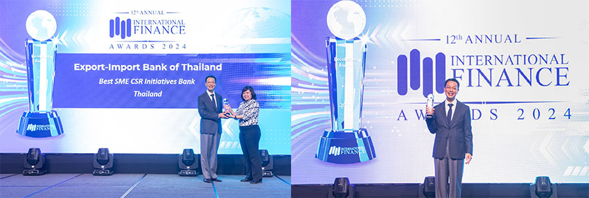 ดร.รักษ์ วรกิจโภคาทร กรรมการผู้จัดการ ธนาคารเพื่อการส่งออกและนำเข้าแห่งประเทศไทย (EXIM BANK) รับรางวัล “Best SME CSR Initiatives Bank-Thailand 2024” จากเวที International Finance Awards 2024 จัดโดย International Finance Magazine นิตยสารด้านธุรกิจและการเงินชั้นนำระดับโลกจากสหราชอาณาจักร สะท้อนถึงความมุ่งมั่นของ EXIM BANK ในการดำเนินภารกิจส่งเสริมความยั่งยืน (Sustainability) ขับเคลื่อนการพัฒนาอย่างสมดุลในทุกมิติทั้งเศรษฐกิจ สังคม และสิ่งแวดล้อม ณ โรงแรม Waldorf Astoria Bangkok เมื่อวันที่ 21 กุมภาพันธ์ 2568