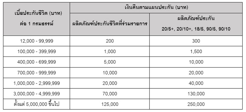 กรุงศรี (ธนาคารกรุงศรีอยุธยา จำกัด (มหาชน)) มอบสิทธิพิเศษสำหรับลูกค้าที่สมัครและชำระค่าเบี้ยผลิตภัณฑ์ประกันชีวิตแบบรายปีในปีแรก ตามแผนประกันที่เข้าร่วมรายการของ บมจ. อลิอันซ์ อยุธยา ประกันชีวิต และ บมจ. ไทยประกันชีวิต ผ่านสาขาธนาคารกรุงศรีอยุธยา ตั้งแต่วันที่ 1 มกราคม 2568 – 31 มีนาคม 2568 โดยคำขอเอาประกันได้รับการอนุมัติภายในวันที่ 30 เมษายน 2568 และไม่ใช้สิทธิ์ยกเลิกกรมธรรม์ หรือถูกบอกล้างโดยบริษัทประกัน รับเงินคืนเข้าบัญชีออมทรัพย์ตามรายละเอียดดังนี้