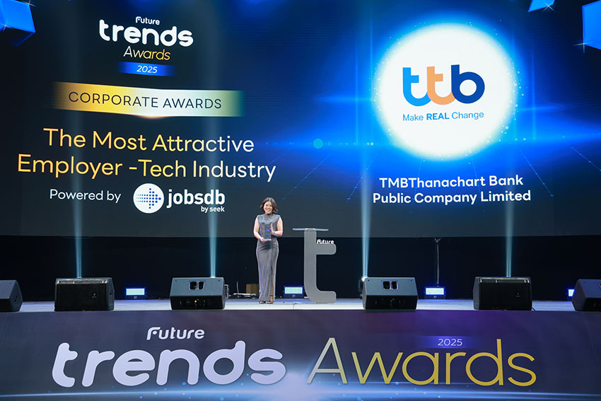 2 รางวัลแห่งความภาคภูมิใจของทีทีบี ได้แก่ รางวัล Future Trends Awards 2025 - The Most Attractive Employer for Workers Over 35 สะท้อนความเป็นองค์กรที่พนักงานทุกวัย โดยเฉพาะผู้มีประสบการณ์อายุ 35 ปีขึ้นไป อยากร่วมงานด้วย ด้วยสภาพแวดล้อมที่เอื้อต่อการเติบโตและพัฒนา และรางวัล Future Trends Awards 2025 - Tech Industry ตอกย้ำการเป็นธนาคารชั้นนำที่นำเทคโนโลยีและนวัตกรรมมาเพิ่มประสิทธิภาพองค์กรและสร้างประสบการณ์ที่ดีที่สุดให้ลูกค้าผ่านโซลูชัน โดยมีนางสาวกาญจนลักษณ์ บำรุงถิ่น รองประธานเจ้าหน้าที่บริหาร ทรัพยากรบุคคล ทีเอ็มบีธนชาต และนางสาวธิรตี วงศ์รวมลาภ หัวหน้ากลยุทธ์ทรัพยากรและพัฒนาองค์กร ทีเอ็มบีธนชาต เป็นผู้แทนรับมอบรางวัล
