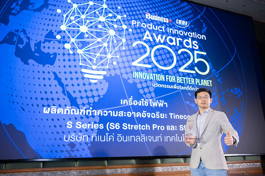 TINECO (ทิเนโค่) แบรนด์ชั้นนำด้านเครื่องดูดฝุ่นอัจฉริยะและเครื่องใช้ไฟฟ้าอัจฉริยะระดับโลก ประสบความสำเร็จอย่างงดงามกับอีก 1 ก้าวสำคัญ ในงาน BUSINESS+ PRODUCT INNOVATION AWARDS 2025 – INNOVATION FOR BETTER PLANET นวัตกรรมเพื่อโลกที่ดีกว่า ด้วยการคว้ารางวัลนวัตกรรมยอดเยี่ยมประจำปี 2568 เครื่องใช้ไฟฟ้า ผลิตภัณฑ์ทำความสะอาดบ้านอัจฉริยะ จากผลิตภัณฑ์ TINECO FLOOR ONE S Series (รุ่น S6 Stretch Pro และ S9 Artist) เครื่องดูดฝุ่นถูพื้นอัจฉริยะรุ่นใหม่ล่าสุด ประสบการณ์การทำความสะอาดบ้านที่เหนือระดับกว่าที่เคยมี