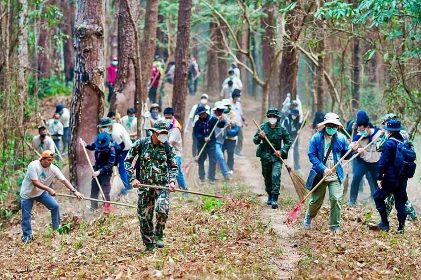ผู้ร่วมกิจกรรมในวันนี้รวมแล้วกว่า 150 คน มาจากหลายหน่วยงาน ทั้งเจ้าหน้าที่อุทยานแห่งชาติดอยสุเทพ-ปุย ทีมงานจากสถานีควบคุมไฟป่าภูพิงค์ ชาวชุมชนม้ง บ้านขุนช่างเคี่ยน รวมทั้งจิตอาสาซีพีเอฟ จากธุรกิจสุกร ธุรกิจอาหารสัตว์บก ธุรกิจไก่ไข่ ธุรกิจไก่เนื้อ ธุรกิจห้าดาว และทีมงาน AXONS โดยเจ้าหน้าที่อุทยานฯ จัดแบ่งทีมเป็น 2 กลุ่ม เพื่อแบ่งโซนทำแนวป้องกันไฟป่า เป็นระยะทาง 1,000 เมตร