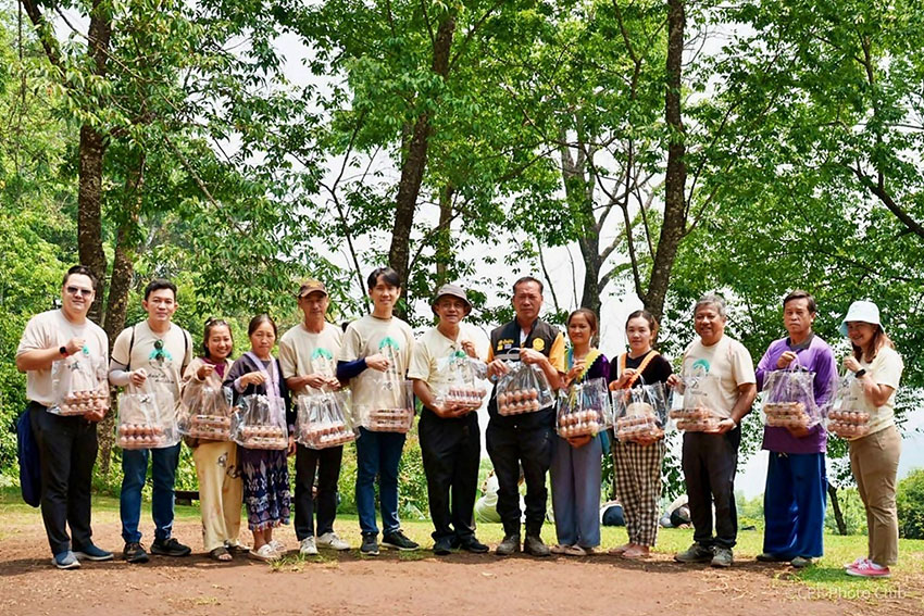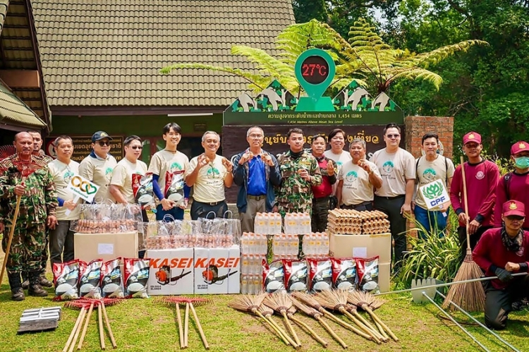 หลังภารกิจเสร็จสิ้น ตัวแทนสมาชิกชมรมฯ ได้มอบไข่ไก่ แทนคำขอบคุณชุมชนชาวม้ง บ้านขุนช่างเคี่ยน พร้อมกับนำเงินที่สมาชิกชมรมฯ ได้ร่วมสมทบในการจัดซื้ออุปกรณ์การทำแนวป้องกันไฟและดับไฟป่า อาทิ เครื่องเป่าลม คราดสปริง ไม้กวาด พร้อมมอบผลิตภัณฑ์อาหารซีพี ทั้งไข่ไก่ ข้าวตราฉัตร และน้ำดื่ม สนับสนุนการทำงานเป็นกำลังใจแก่เจ้าหน้าที่และอาสาสมัครชุมชน โดย นายฤทธิชัย ภูมิอมร ผู้อำนวยการอาวุโส ธุรกิจผลิตและขายอาหารสัตว์บกภาคเหนือ เป็นผู้แทนส่งมอบให้กับ หัวหน้าธงชัย นาราษฎร์ หัวหน้าอุทยานดอยสุเทพ-ปุย
