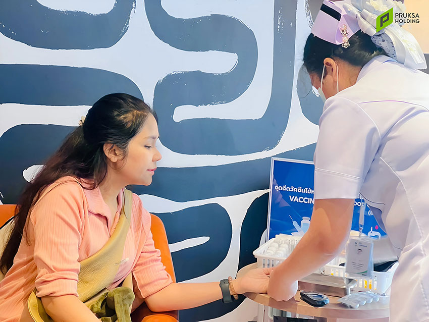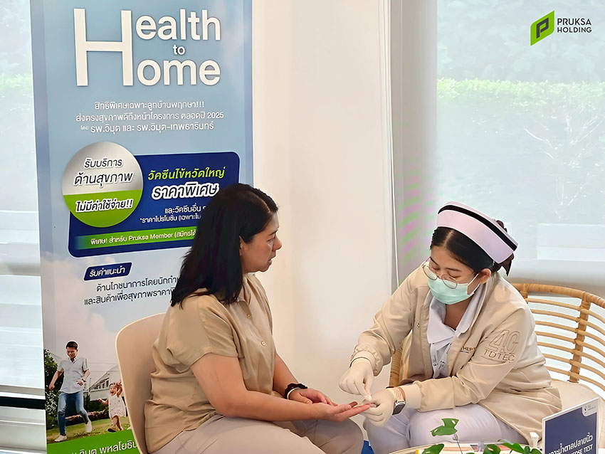 "Health to Home" : ส่งมอบสุขภาพดีถึงบ้าน โดยร่วมมือกับโรงพยาบาลวิมุต ส่งผู้เชี่ยวชาญออกตรวจสุขภาพให้กับลูกบ้านฟรีถึงบ้าน ดูแลครบวงจรตั้งแต่การคัดกรองโรค NCD ตรวจน้ำตาลปลายนิ้ว วัดความดัน ตรวจคลื่นไฟฟ้าหัวใจ และเช็กมวลร่างกายด้วยเครื่อง Inbody พร้อมคำแนะนำด้านโภชนาการจากนักกำหนดอาหารโดยเฉพาะ นอกจากนี้ ยังมีแพ็กเกจตรวจสุขภาพราคาพิเศษ และสิทธิพิเศษสำหรับสมาชิก PRUKSA MEMBER รับวัคซีนไข้หวัดใหญ่ 4 สายพันธุ์ในราคาเพียง 370 บาท