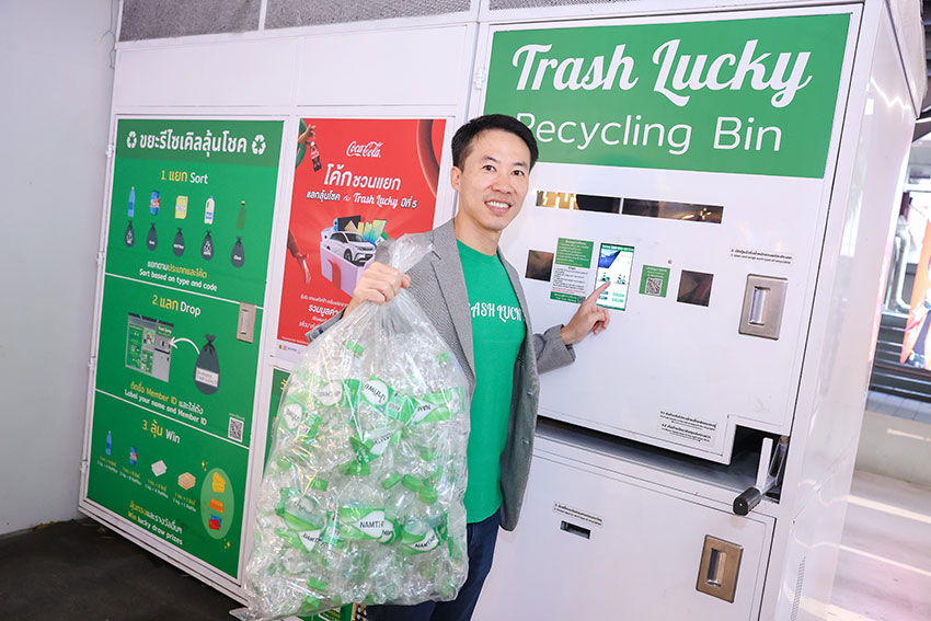 นายณัฐภัค อติชาตการ ผู้ร่วมก่อตั้งและกรรมการผู้จัดการ บริษัท แทรชลัคกี้ จำกัด (Trash Lucky) กล่าวว่า “แทรชลัคกี้มีความยินดีอย่างยิ่งที่โครงการ “ “โค้ก” ชวนแยก แลกลุ้นโชค กับ Trash Lucky” ปีที่ 5 ได้ต้อนรับพันธมิตรใหม่อย่าง ท็อปส์ (TOPS), GO WHOLESALE และมหาวิทยาลัยชั้นนำ 9 แห่ง มาร่วมเป็นจุดรับวัสดุรีไซเคิลแห่งใหม่ ตลอดจนยกระดับความร่วมมือกับ LINE MAN หนึ่งในพันธมิตรผู้สนับสนุนรางวัล ด้วยการมอบโค้ดส่วนลด LINE MAN Food 30% มูลค่าสูงสุด 100 บาท ให้กับทุกคนที่ลงมือรีไซเคิลกับเราในโครงการปีนี้ ซึ่งน่าจะช่วยดึงดูดกลุ่มผู้บริโภครุ่นใหม่ที่ชื่นชอบการแลกรับของรางวัลที่ตอบโจทย์ไลฟ์สไตล์ได้ในทันที นอกจากนี้ แทรชลัคกี้ยังร่วมมือกับมหาวิทยาลัยต่าง ๆ ให้เป็นจุดรับวัสดุรีไซเคิลแห่งใหม่ พร้อมทั้งจัดโรดโชว์และกิจกรรมลุ้นรางวัลตามมหาวิทยาลัยต่าง ๆ อีกด้วย โดยขวดพลาสติก PET ที่เก็บได้ในโครงการ จะถูกนำกลับเข้าสู่ระบบการรีไซเคิลผ่านความร่วมมือกับบริษัท อินโดรามา เวนเจอร์ส จำกัด (มหาชน) ส่วนและกระป๋องอลูมิเนียมจะถูกส่งต่อให้บริษัท ไทยเบเวอร์เรจแคน จำกัด เพื่อนำไปรีไซเคิลในระบบ Closed Loop ซึ่งเป็นระบบที่มีประสิทธิภาพ สามารถลดการใช้ทรัพยากรธรรมชาติ และพลังงานในการผลิตเมื่อเทียบกับการผลิตจากวัตถุดิบใหม่ ถือเป็นระบบรีไซเคิลที่สร้างผลกระทบเชิงบวก และความยั่งยืนในระยะยาว โดยเงินที่ได้จากการรีไซเคิลกระป๋องอลูมิเนียมจะนำไปบริจาคให้กับมูลนิธิขาเทียมในสมเด็จพระ ศรีนครินทราบรมราชชนนี องค์กรที่ผลิตและบริจาคขาเทียมให้กับผู้พิการแขนขาที่ขาดแคลน นับเป็นการสร้างคุณค่าทั้งต่อสิ่งแวดล้อมและสังคมไปพร้อมกัน”