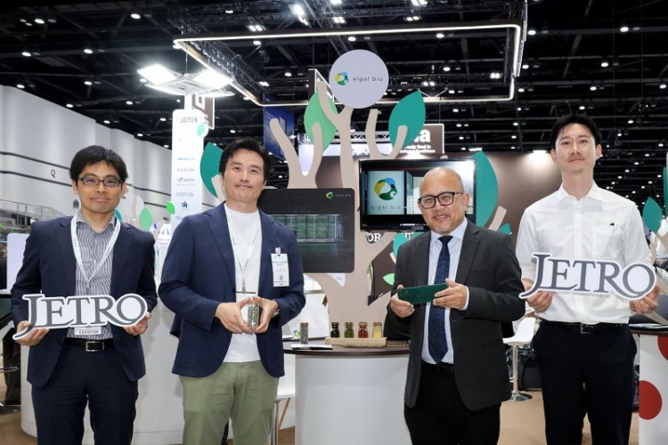 นายยุทธนา เจริญวงศ์ กรรมการผู้จัดการ (ที่สองจากขวา) บริษัท บีแอลซีพี เพาเวอร์ จำกัด (BLCP) จับมือกับ นายมาซาฟูสะ โอเอ (ที่สองจากซ้าย) ประธานเจ้าหน้าที่ฝ่ายปฏิบัติการ บริษัท อัลกัล ไบโอ จำกัด (Algal Bio) สตาร์ทอัพด้านเทคโนโลยีชีวภาพจากประเทศญี่ปุ่น นำร่องโครงการบำบัดก๊าซเรือนกระจกด้วยนวัตกรรมจุลสาหร่าย ซึ่งเป็นหนึ่งในความพยายามลดปริมาณการปล่อยก๊าซคาร์บอนไดออกไซด์สู่ชั้นบรรยากาศอย่างยั่งยืน โครงการนี้นับเป็นอีกก้าวสำคัญของความร่วมมือไทย-ญี่ปุ่นในการขับเคลื่อนพลังงานสะอาด โดยมีนายฟุรุกาวะ ทาซากุ (คนแรกซ้าย) ผู้อำนวยการฝ่ายธุรกิจเพื่อความยั่งยืน ศูนย์สนับสนุนธุรกิจต่างประเทศ สำนักงานใหญ่ องค์การส่งเสริมการค้าต่างประเทศของญี่ปุ่น (JETRO) ให้การต้อนรับและแสดงความยินดีในความร่วมมือระหว่างภาคเอกชนไทย-ญี่ปุ่น เมื่อเร็วๆ นี้