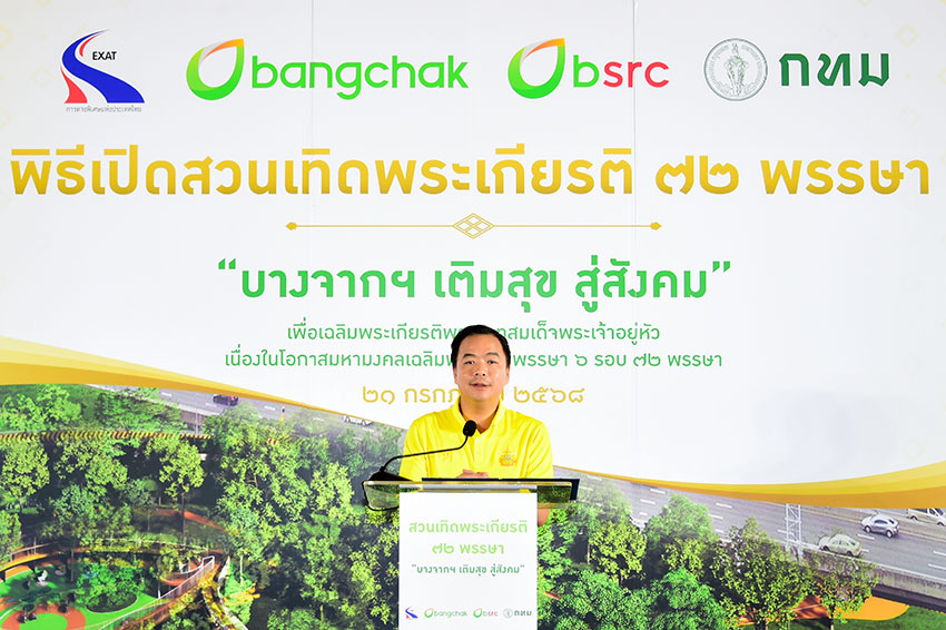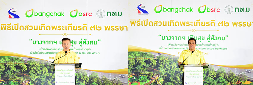 ณ บริเวณสวนเทิดพระเกียรติ ริมทางพิเศษเฉลิมมหานคร เลียบทางลงทางด่วน ถนนสุขุมวิท 50 นายสุรเชษฐ์ เหล่าพูลสุข ผู้ว่าการการทางพิเศษแห่งประเทศไทย (กทพ.) กระทรวงคมนาคม, นายชัชชาติ สิทธิพันธุ์ ผู้ว่าราชการกรุงเทพมหานคร และนายชัยวัฒน์ โควาวิสารัช ประธานเจ้าหน้าที่บริหารกลุ่มบริษัทบางจากและกรรมการผู้จัดการใหญ่ บริษัท บางจาก คอร์ปอเรชั่น จำกัด (มหาชน) ร่วมพิธีเปิดสวนเทิดพระเกียรติ 72 พรรษา บางจากฯ เติมสุข สู่สังคม