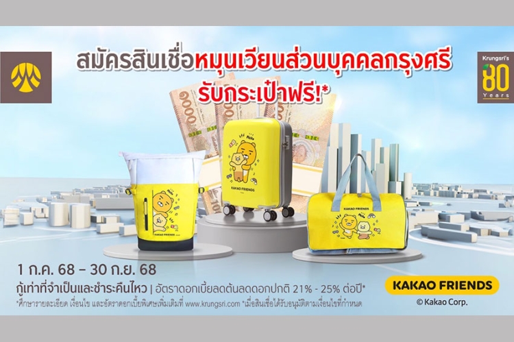 กรุงศรี (ธนาคารกรุงศรีอยุธยา จำกัด (มหาชน)) มอบสิทธิพิเศษสำหรับลูกค้าใหม่ที่สมัครสินเชื่อหมุนเวียนส่วนบุคคลระหว่างวันที่ 1 กรกฎาคม – 30 กันยายน 2568 โดยได้รับอนุมัติสินเชื่อเฉพาะอัตราดอกเบี้ยปกติ และรับเงินกู้ด้วยวิธีโอนเงินเข้าบัญชีเงินฝากธนาคารกรุงศรีอยุธยา ภายในวันที่ 31 ตุลาคม 2568 จะได้รับของกำนัลตามวงเงินอนุมัติ ดังนี้