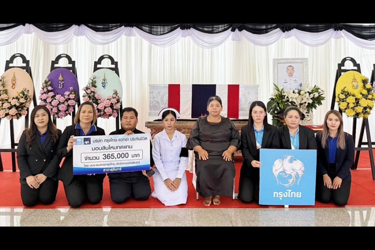 บมจ.กรุงไทย-แอกซ่า ประกันชีวิต ร่วมกับ บมจ.ธนาคารกรุงไทย สาขาสุรินทร์ มอบสินไหมมรณกรรม จำนวน 365,000 บาท ให้กับครอบครัวของ ส.อ. อัมรินทร์ ผาสุข ทหารกล้าที่สละชีพ จากเหตุการณ์ปะทะที่ชายแดนไทย-กัมพูชา โดยมีผู้แทนบริษัทฯ และธนาคารฯ เข้ามอบสินไหมมรณกรรม และร่วมแสดงความเสียใจในพิธีพระราชทานเพลิงศพ ณ วัดบูรพาราม ต.คูเมือง อ.วารินชำราบ จ.อุบลราชธานี เมื่อวันที่ 2 สิงหาคม ที่ผ่านมา