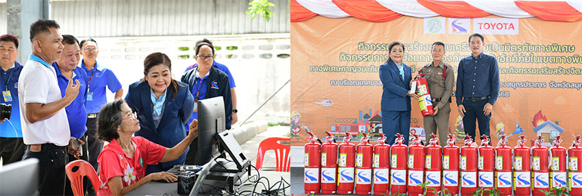 นางกุลกัญญา ทุมเสน รองผู้ว่าการ (กฎหมาย) กทพ. กล่าวว่า ได้ตระหนักและให้ความสำคัญในการเสริมสร้างสังคมในพื้นที่รอบเขตทางพิเศษให้เกิดความเข้มแข็ง ความสามัคคี และส่งเสริมความสัมพันธ์อันดีให้เกิดขึ้นระหว่างการทางพิเศษแห่งประเทศไทยและชุมชนรอบเขตทางพิเศษ โรงเรียน และหน่วยงานอื่น ๆ รอบเขตทางพิเศษอย่างยั่งยืนลดพื้นที่เสี่ยง เพื่อให้ชุมชนช่วยดูแลพื้นที่รอบเขตทางพิเศษ โดยการจัดกิจกรรมการสร้างชุมชนเครือข่ายเป็นมิตรกับทางพิเศษ และกิจกรรมการฝึกซ้อมการป้องกันและระงับอัคคีภัยทางพิเศษกาญจนาภิเษก (บางพลี-สุขสวัสดิ์) ประจำปี 2568 ในวันนี้ ได้รับความร่วมมือจาก เทศบาลตำบลเทพารักษ์ สถานีตำรวจภูธร สำโรงเหนือ โรงพยาบาลส่งเสริมสุขภาพตำบลเทพารักษ์ โรงเรียนเทศบาลเทพารักษ์ ๑ (สละ ฉลวย อุปถัมภ์) โรงเรียนอนุบาลเทศบาลเทพารักษ์ โรงเรียนผู้สูงอายุเทศบาลตำบลเทพารักษ์ ชุมชนหมู่บ้านบางปูนคร ชุมชนหมู่บ้านเทพานิเวศน์ เข้าร่วมกิจกรรมการฝึกซ้อมป้องกันและระงับอัคคีภัย และบริษัท โตโยต้า มอเตอร์ ประเทศไทย จำกัด ร่วมให้ความรู้เกี่ยวกับการขับขี่ปลอดภัยซึ่ง กทพ. ต้องขอขอบคุณชุมชนต่าง ๆ ที่ให้ความร่วมมือเป็นอย่างดี มาโดยตลอด สำหรับกิจกรรมในครั้งนี้ กทพ. ได้จัดให้ความรู้วิธีการดับเพลิง การฝึกซ้อมขั้นตอนอพยพกรณีเกิดเหตุเพลิงไหม้ การปฐมพยาบาลเบื้องต้น การช่วยฟื้นคืนชีพ (First Aid & CPR) และความรู้การขับขี่ปลอดภัย ให้กับชาวชุมชนรอบเขตทางพิเศษ พร้อมทั้งได้มอบถังดับเพลิงให้กับชุมชนหมู่บ้านบางปูนคร ชุมชนหมู่บ้านเทพานิเวศน์ โรงเรียนเทศบาลเทพารักษ์ 1 (สละ ฉลวย อุปถัมภ์) โรงพยาบาลส่งเสริมสุขภาพตำบลเทพารักษ์ สถานีตำรวจภูธร สำโรงเหนือ มอบอุปกรณ์กีฬาให้กับโรงเรียนอนุบาลเทศบาลเทพารักษ์ และมอบอุปกรณ์การเรียนรู้สำหรับผู้สูงอายุให้กับนักเรียนโครงการโรงเรียนผู้สูงอายุเทศบาลตำบลเทพารักษ์ อีกด้วย