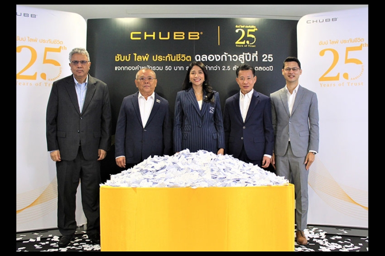 ชับบ์ ไลฟ์ ประกันชีวิต นำโดย คุณอลิสา อารีพงษ์ ประธานเจ้าหน้าที่บริหาร พร้อมผู้บริหารระดับสูง ร่วมจับรายชื่อผู้โชคดีในแคมเปญ “ชับบ์ ไลฟ์ ประกันชีวิต 25 ปี แจกทอง 50 บาท” ครั้งที่ 1 ให้กับลูกค้าที่ทำประกันชีวิตตามเงื่อนไข จำนวน 100 รางวัล น้ำหนักรวม 25 บาท โดยบริษัทฯ จะประกาศรายชื่อผู้ได้รับรางวัลอย่างเป็นทางการผ่านทางเว็บไซต์ของบริษัทฯ https://www.chubb.com/th-th/celebrating-25th-anniversary.html ทางสื่อโซเชียลมีเดียของ ชับบ์ ไลฟ์ ประกันชีวิต และทาง SMS