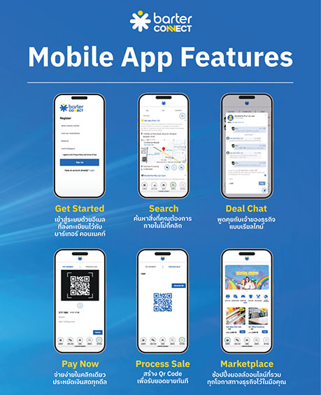สำหรับ Barter Connect Mobile App ถูกพัฒนาขึ้นจากการวิเคราะห์พฤติกรรมการใช้งานของเจ้าของธุรกิจ โดยมีฟีเจอร์หลักที่ตอบโจทย์ความต้องการเฉพาะ