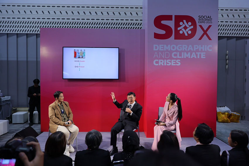 สำหรับกิจกรรมในงานวันแรกนั้น มีการร่วมอภิปรายแลกเปลี่ยนความรู้และประสบการณ์ใน 2 เรื่องสำคัญ ได้แก่ หัวข้อ “Demographic and Climate Crises - Challenges and Opportunities” และหัวข้อ “Demographic and Climate Crises - Changing Future Together” ชี้ให้เห็นว่าวิกฤตซ้อนวิกฤต: โครงสร้างประชากรและสภาพภูมิอากาศ ส่งผลกระทบต่อคุณภาพชีวิตของกลุ่มเปราะบางอย่างมาก ทั้ง เด็ก เยาวชน สตรี ผู้สูงอายุ คนพิการ และผู้ด้อยโอกาสในสังคมโดยที่การแก้ไขปัญหาอย่างยั่งยืนจะต้องยึดหลัก "การไม่ทิ้งใครไว้ข้างหลัง" ต้องให้ความสำคัญกับการออกแบบเมืองให้เป็นเมืองน่าอยู่ ปลอดภัย และครอบคลุมทุกกลุ่มคน พร้อมกับพัฒนานโยบายสู่ความเป็น “Climate-smart” มุ่งเน้นประชาชนเป็นศูนย์กลาง และบูรณาการเข้ากับระบบการคุ้มครองทางสังคม อาศัยความร่วมมือจากทุกระดับ ตั้งแต่ท้องถิ่นจนถึงนานาชาติ ควบคู่ไปกับสร้างศักยภาพและการมีส่วนร่วมของคนในชุมชน รวมถึงกลุ่มเปราะบาง