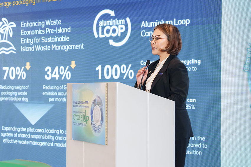 ขณะที่เป้าหมายความร่วมมือครั้งนี้ได้วางแนวทางหลักไว้ 3 ด้าน ได้แก่ การพัฒนาฐานข้อมูลและระบบบริหารจัดการ โดยจะจัดทำฐานข้อมูลบรรจุภัณฑ์เครื่องดื่มอลูมิเนียมตลอดวงจร ตั้งแต่การผลิต การบริโภค การเก็บกลับ การรีไซเคิล ไปจนถึงการจัดทำระบบบัญชีก๊าซเรือนกระจกที่สอดคล้องกับมาตรฐานสากล เพื่อรองรับมาตรการ TH-CBAM และนโยบายการลดก๊าซเรือนกระจกของไทย รวมถึงการใช้ระบบรีไซเคิลวงจรปิดของ Aluminium Loop ซึ่งสอดคล้องกับร่างกฎหมายด้านการจัดการบรรจุภัณฑ์และการเปลี่ยนแปลงสภาพภูมิอากาศ เพื่อเป็นต้นแบบให้กับอุตสาหกรรมอื่นๆ ส่งเสริมการสร้างมาตรฐานใหม่ของการจัดการบรรจุภัณฑ์อย่างยั่งยืน และสุดท้ายคือ การจัดการขยะในพื้นที่จัดการยาก ด้วยการนำหลักเศรษฐศาสตร์พฤติกรรม (Behavioral Economics) มาประยุกต์ใช้เพื่อกระตุ้นพฤติกรรมผู้บริโภคให้เกิดการเปลี่ยนแปลง เร่งพัฒนาระบบการจัดการขยะบนพื้นที่ชายฝั่งทะเล สนับสนุนมาตรฐาน “ทะเลสะอาด” และสร้างจิตสำนึกของประชาชนให้พร้อมปรับตัวต่อการเปลี่ยนแปลง