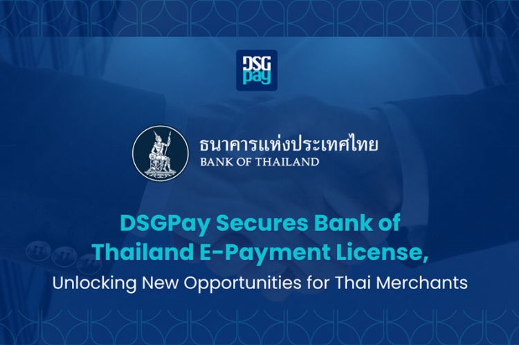 DSGPay บริษัทฟินเทคระดับโลกที่เชี่ยวชาญด้านการชำระเงินและรับชำระเงินระหว่างประเทศ Multi-Currency Virtual Accounts และบริการแลกเปลี่ยนเงินตราต่างประเทศ (Foreign Exchange) ได้รับอนุมัติใบอนุญาตประกอบธุรกิจบริการรับชำระเงินทางอิเล็กทรอนิกส์ (E-Payment License) จาก ธนาคารแห่งประเทศไทย (ธปท.) อย่างเป็นทางการ