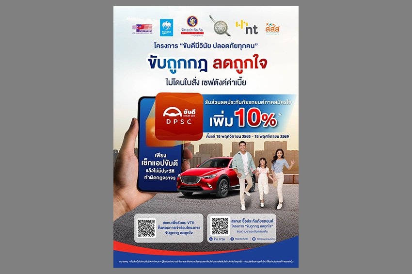 ผนึกกำลังเดินหน้าเสริมสร้างความปลอดภัยบนท้องถนน พร้อมมอบสิทธิประกันภัยพิเศษภายใต้โครงการ “ขับดีมีวินัย ปลอดภัยทุกคน” เพื่อส่งเสริมให้ประชาชนตระหนักถึงความปลอดภัยทางถนน เคารพกฎจราจร และเข้าถึงความคุ้มครองด้านประกันภัยได้สะดวกยิ่งขึ้นผ่านดิจิทัลแพลตฟอร์ม