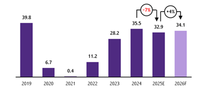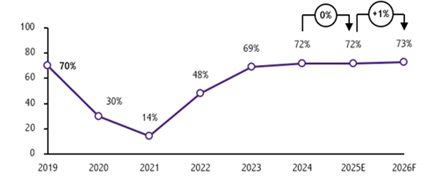 การฟื้นตัวของนักท่องเที่ยวต่างชาติและการขยายตัวของนักท่องเที่ยวไทยเที่ยวไทยได้หนุนให้ธุรกิจโรงแรมเติบโตตาม โดยอัตราการเข้าพักเฉลี่ยทั่วประเทศคาดว่าจะอยู่ที่ 73% สูงขึ้นจากปี 2568 เล็กน้อยที่ 72% ขณะที่ราคาห้องพักเฉลี่ยต่อคืนทั่วประเทศมีแนวโน้มปรับเพิ่มราว 5%YoY หลังจากที่หดตัวในปี 2568 ทั้งนี้แนวโน้มในระยะข้างหน้า คาดว่าทั้งอัตราการเข้าพักเฉลี่ยทั่วประเทศและราคาห้องพักเฉลี่ยต่อคืนจะขยายตัวดีขึ้น ตามการฟื้นตัวของนักท่องเที่ยวต่างชาติ และการท่องเที่ยวในประเทศที่ยังคงแข็งแรง อย่างไรก็ตาม ราคาห้องพักเฉลี่ยยังอาจเผชิญแรงกดดันจากการใช้จ่ายของนักท่องเที่ยวทั่วโลกที่มีความระมัดระวังมากขึ้นตามภาวะเศรษฐกิจที่ได้รับผลกระทบจากนโยบายภาษีของสหรัฐฯ รวมถึงการปรับบริการและราคาห้องพักเพื่อรองรับนักท่องเที่ยวไทยมากขึ้นในช่วงที่นักท่องเที่ยวต่างชาติยังฟื้นตัวได้ไม่เต็มที่