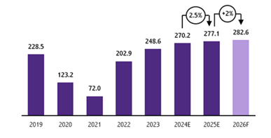ขณะที่นักท่องเที่ยวไทยเที่ยวไทยคาดว่าจะเติบโตราว 2%YoY จาก 277.1 ล้านคนในปี 2568 มาอยู่ที่ 282.6 ล้านคน และจะขยายตัวต่อเนื่องในระยะข้างหน้า จากแรงหนุนของมาตรการส่งเสริมการท่องเที่ยวภายในประเทศของภาครัฐที่คาดว่าจะทยอยออกมาตลอดทั้งปี ขณะเดียวกัน การพัฒนาโครงสร้างพื้นฐานด้านคมนาคมยังเดินหน้าต่อเนื่องเชื่อมต่อระหว่างเมืองหลักและเมืองรองเพื่อให้การเดินทางสะดวกยิ่งขึ้น รวมถึงการออกแคมเพนโพรโมตการท่องเที่ยวในหลายเส้นทางทั้งบริการรถโดยสารท่องเที่ยว เส้นทางท่องเที่ยวแม่น้ำโขงเชื่อมโยงประเทศเพื่อนบ้าน และรถไฟท่องเที่ยว อย่าง Kiha, Royal Blossom, STR Prestige และ Blue Jasmine อย่างไรก็ดี ยังมีปัจจัยท้าทายที่มีโอกาสส่งผลต่อการเติบโตของนักท่องเที่ยวไทยเที่ยวไทย ไม่ว่าจะเป็น ความเปราะบางของภาวะเศรษฐกิจในประเทศซึ่งมีผลต่อการวางแผนท่องเที่ยวและการใช้จ่ายด้านการท่องเที่ยวของคนไทย ขณะที่การเดินทางออกต่างประเทศของนักท่องเที่ยวไทยยังมีแนวโน้มเพิ่มขึ้นด้วย จากมาตรการยกเว้นวีซ่าให้กับคนไทยในหลายประเทศ และแพ็กเกจท่องเที่ยวต่างประเทศราคาประหยัดที่ออกมาดึงดูดนักท่องเที่ยวไทยอย่างต่อเนื่อง