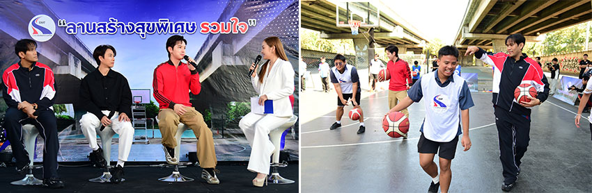 ยกระดับคุณภาพชีวิตรอบทางพิเศษ! การทางพิเศษแห่งประเทศไทย (กทพ.) กระทรวงคมนาคม เดินหน้าสานต่อพันธกิจเพื่อสังคมอย่างต่อเนื่อง ล่าสุด เปิดตัวโครงการ “ลานสร้างสุขพิเศษ รวมใจ โดย การทางพิเศษฯ” ชูสนามบาสเกตบอล สร้างสุขภาพดีให้กับชุมชน บริเวณลานกีฬาวังทองหลาง (ฝั่งเหนือ) พื้นที่ใต้ทางพิเศษฉลองรัช เพื่อเป็นพื้นที่แห่งโอกาส และส่งเสริมการออกกำลังกายของคนในชุมชน พร้อมชวนนักกีฬาบาสเกตบอลทีมชาติไทย อาร์ม-ณัฐกานต์ เมืองบุญ, เดฟ-สุขเดฟ โคเคอร์ และซุปตาร์นักชู้ต เต๋า-เศรษฐพงศ์ เพียงพอ มาร่วมถ่ายทอดทักษะ เทคนิคการเล่น และสร้างแรงบันดาลใจสู่การเป็นนักบาสเกตบอลอาชีพ พร้อมมอบอุปกรณ์กีฬาให้กับเยาวชนในพื้นที่ โดยมี นายสุรเชษฐ์ เหล่าพูลสุข ผู้ว่าการการทางพิเศษแห่งประเทศไทย (กทพ.), ผู้แทนกลุ่มงานวิชาการ กรุงเทพมหานคร และประชาชนในชุมชน โดยรอบจำนวน 4 ชุมชน ประกอบด้วย ชุมชนจันทราสุข, ชุมชนสุเหร่าดอนสะแก, ชุมชนลาดพร้าว69 และชุมชนลาดพร้าว80 ร่วมงานอย่างคึกคัก