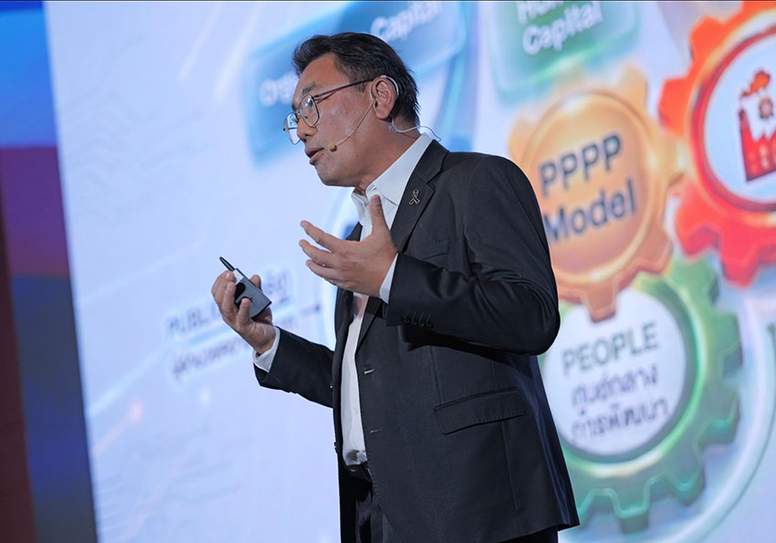 “ประเทศไทยเผชิญภาวะวิกฤต GDP โตต่ำสุดในอาเซียนอย่างต่อเนื่อง เช่นเดียวกับสัดส่วน SMEs ในเศรษฐกิจไทยต่ำมาก สะท้อนการสูญเสียความสามารถในการแข่งขันอย่างรุนแรง ถึงเวลาแล้วที่อุตสาหกรรมไทยต้องก้าวกระโดด สู่ Smart Industry ต่อยอดศักยภาพปัจจุบันด้วยปัญญาประดิษฐ์ (AI) และเทคโนโลยีดิจิทัลอัจฉริยะ พร้อมทั้งพัฒนา Green Infrastructure เพื่อสร้างสภาพแวดล้อมที่เอื้อต่อการลงทุน และเพิ่มขีดความสามารถในการเเข่งขันของ SMEs ไทย ให้สอดคล้องกับ Supply Chain โลกยุคใหม่ โดยมีทุน 3 ด้านเป็นแรงขับเคลื่อนสำคัญ ได้แก่ ทุนมนุษย์ (Human Capital) พัฒนาทักษะแบบใหม่สำหรับอุตสาหกรรมของอนาคต ทุนข้อมูล (Information Capital) ข้อมูลที่เข้าถึงแหล่งทุนและลูกค้า สร้างความได้เปรียบในการแข่งขัน และทุนองค์กร (Organization Capital) ระบบมาตรฐานความร่วมมือตลอดทั้งห่วงโซ่ที่ทำให้ SMEs เข้า Global value chain ได้จริง