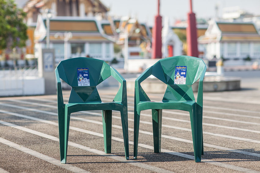 สำหรับเก้าอี้รักษ์โลกนี้ผลิตจากพลาสติกใช้แล้วที่ประชาชนร่วมกันคัดแยกในกิจกรรมต่าง ๆ ที่กรุงเทพมหานคร ร่วมกับภาคีเครือข่ายจัดขึ้นในพื้นที่กรุงเทพมหานคร เช่น งานพระราชพิธีพระบรมศพสมเด็จพระนางเจ้าสิริกิติ์ พระบรมราชินีนาถ พระบรมราชชนนีพันปีหลวง และงานกาชาดประจำปี 2568 เป็นต้น ซึ่งกรุงเทพมหานคร โดยสำนักสิ่งแวดล้อมและสำนักงานเขต ร่วมกันรณรงค์ส่งเสริม อำนวยความสะดวก และแนะนำประชาชนผู้เข้าร่วมงานคัดแยกขยะตั้งแต่ต้นทางตามแนวทาง “ไม่เทรวม” แยกขยะ เป็น 3 ประเภท เพื่อนำไปใช้ประโยชน์และจัดการอย่างถูกวิธี ประกอบด้วย ขยะอินทรีย์ สำนักงานเขตพื้นที่นำไปหมักทำปุ๋ย และส่งต่อเกษตรกรเป็นอาหารสัตว์ ขยะทั่วไป เก็บรวบรวมส่งกำจัดอย่างถูกสุขลักษณะ และขยะรีไซเคิลคัดแยกเพื่อนำเข้าสู่กระบวนการรีไซเคิล เป็นการลดและคัดแยกขยะตั้งแต่ต้นทางอย่างเป็นระบบ และนำกลับเข้าสู่กระบวนการรีไซเคิล โดยนำมาผลิตเป็นเก้าอี้รักษ์โลกด้วยเทคโนโลยีรีไซเคิลขั้นสูงจาก SCGC เพื่อนำไปใช้ในกิจกรรมต่าง ๆ ของกรุงเทพมหานครต่อไป