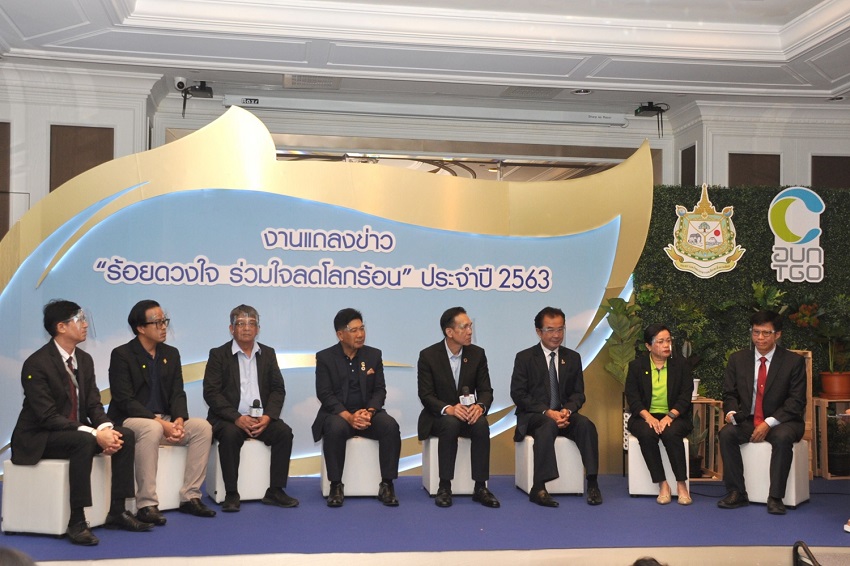 จากความสำเร็จดังกล่าว TGO จึงจัดพิธีขอบคุณและมอบประกาศนียบัตรในงาน “ร้อยดวงใจ ร่วมใจลดโลกร้อน” ประจำปี ๒๕๖๓ ในวันพุธที่ ๑๖ กันยายน ๒๕๖๓ ณ โรงแรมเดอะเบอร์เคลีย์ ประตูน้ำ กรุงเทพฯ โดยมีวัตถุประสงค์เพื่อเชิดชูเกียรติผู้ประกอบการและภาคส่วนต่างๆ ที่เป็นตัวอย่างที่ดีในการบริหารจัดการและลดการปล่อยก๊าซเรือนกระจกภายในประเทศ ซึ่งภายในงานจะมีกิจกรรมประกอบด้วยการมอบโล่และประกาศนียบัตรแด่บุคคล ชุมชน องค์กร และผลิตภัณฑ์ลดโลกร้อนที่อบก. ให้การรับรองและส่งเสริม รวมถึงการแสดงนิทรรศการเผยแพร่ความรู้เรื่องผลกระทบของการเปลี่ยนแปลงสภาพภูมิอากาศ ครั้งนี้มีผู้เข้าร่วมงานจากภาครัฐ เอกชน อุตสาหกรรม องค์กรปกครองส่วนท้องถิ่น และสื่อมวลชน จำนวน ๑,๒๓๒ คน และได้รับความกรุณาจากท่านปลัดกระทรวงทรัพยากรธรรมชาติและสิ่งแวดล้อม (นายจตุพร บุรุษพัฒน์) เป็นประธานในพิธีและมอบประกาศนียบัตร ซึ่งสร้างขวัญและกำลังใจให้กับผู้ที่มีส่วนร่วมในการลดการปล่อยก๊าซเรือนกระจก ส่งผลดีต่อประเทศไทยและกระทรวงทรัพยากรธรรมชาติและสิ่งแวดล้อม เนื่องจากมีผู้เข้าร่วมกิจกรรมลดการปล่อยก๊าซเรือนกระจกมากขึ้น เกิดการบูรณาการความร่วมมือของภาคส่วนที่เกี่ยวข้องในการลดก๊าซเรือนกระจกต่อเนื่องอย่างเป็นรูปธรรม