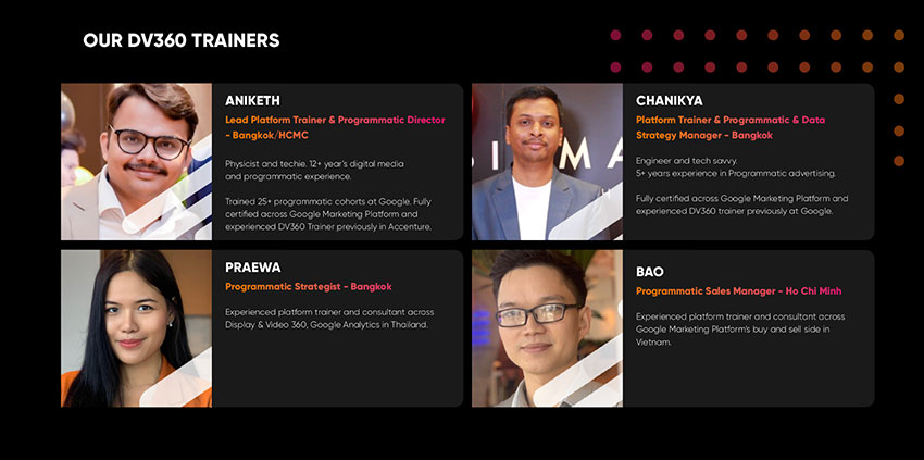 การเปิดตัว DV360 Training Course นี้ทำให้ Bidmath เป็นบริษัทแห่งแรกในเอเชียที่เปิดหลักสูตรเป็นภาษาไทย เวียดนาม และภาษาอังกฤษ และมีการจัดการอบรมแบบ Conference Call ในช่วงสถานการณ์ COVID-19 โดยในปัจจุบันหลักสูตรนี้สามารถสอนในห้องเรียนแบบตัวต่อตัวได้เช่นกัน ณ อาคาร T-One ทองหล่อ กรุงเทพฯ