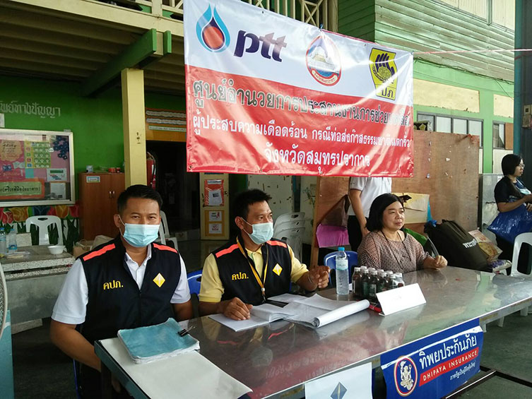 ทั้งนี้ ได้รับรายงานจากสำนักงาน คปภ. จังหวัดสมุทรปราการ และข้อมูลที่บริษัทประกันภัยรายงานข้อมูลการทำประกันภัยผ่านระบบแจ้งอุบัติภัยรายใหญ่เบื้องต้น พบว่า บริษัท ปตท. จำกัด (มหาชน) ได้จัดทำประกันภัยไว้กับ บริษัท ทิพยประกันภัย จำกัด (มหาชน) ประกอบด้วย กรมธรรม์ประกันภัยความเสี่ยงภัยทรัพย์สิน ที่ให้ความคุ้มครองความเสียหายต่อทรัพย์สินของผู้เอาประกันภัย ตามกรมธรรม์เลขที่ 14019-111-200000604 กรมธรรม์เริ่มความคุ้มครองวันที่ 1 ตุลาคม 2563 สิ้นสุดวันที่ 30 กันยายน 2564 จำนวนเงินเอาประกันภัย 40,000,000 ดอลลาร์สหรัฐ กรมธรรม์ประกันภัยความรับผิดบุคคลภายนอก ที่ให้ความคุ้มครองความเสียหายต่อชีวิต ร่างกาย การบาดเจ็บ และทรัพย์สินของบุคคลภายนอกที่ผู้เอาประกันภัยต้องรับผิดตามกฎหมาย กรมธรรม์เลขที่ 14013-111-200000312 กรมธรรม์เริ่มความคุ้มครองวันที่ 1 ตุลาคม 2563 สิ้นสุดวันที่ 30 กันยายน 2564 จำนวนเงินเอาประกันภัย 50,000,000 ดอลลาร์สหรัฐ และกรมธรรม์ประกันภัยรับผิดตามกฎหมายอันเกิดจากการประกอบกิจการควบคุมประเภทที่ 3 ตามกฎหมายว่าด้วยการควบคุมน้ำมันเชื้อเพลิง ส่วนที่เกี่ยวกับการประกอบกิจการควบคุมก๊าซธรรมชาติ เริ่มความคุ้มครองวันที่ 1 มกราคม 2563 สิ้นสุดวันที่ 31 ธันวาคม 2564 คุ้มครองกรณีเสียชีวิต หรือทุพพลภาพถาวรสิ้นเชิง 200,000 บาทต่อคน ค่ารักษาพยาบาลตามความเสียหายที่แท้จริงไม่เกิน 200,000 บาทต่อคน ความเสียหายต่อทรัพย์สินของผู้ได้รับความเสียหายตามความเสียหายที่แท้จริง แต่ไม่เกินจำนวนเงินเอาประกันภัยตามประเภทกิจการควบคุมประเภทที่ 3 ส่วนที่เกี่ยวกับธุรกิจก๊าซธรรมชาติ โดยคุ้มครองรวมกันสูงสุดไม่เกิน 450,000 บาทต่อครั้ง