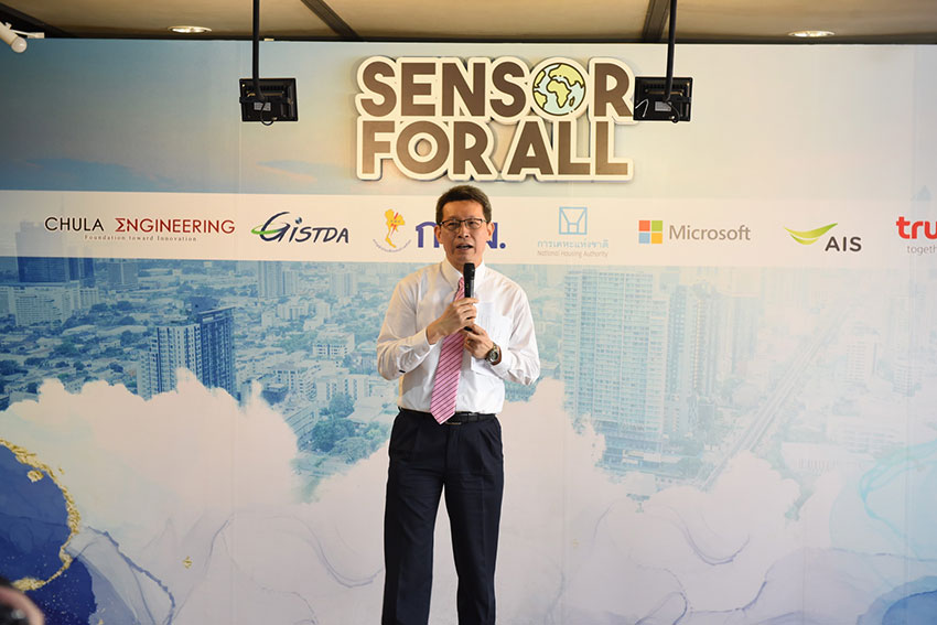 “ประเทศไทยเป็นหนึ่งในประเทศที่ได้รับผลกระทบจากปัญหาคุณภาพอากาศและฝุ่นละอองขนาดเล็ก PM2.5 อย่างรุนแรง โดยเฉพาะในช่วงระหว่างเดือนธันวาคมถึงพฤษภาคมของทุกปี ซึ่งก่อให้เกิดผลกระทบมากมายโดยเฉพาะอย่างยิ่งผลกระทบต่อสุขภาพ ซึ่งการแก้ปัญหาที่มีประสิทธิภาพจะต้องอาศัยความร่วมมือของทุกภาคส่วน ประกอบกับข้อมูลปริมาณฝุ่นที่มีความถูกต้องแม่นยำและครอบคลุมพื้นที่ที่ได้รับผลกระทบ ทั้งนี้โครงการ Sensor for All ได้ดำเนินการมาอย่างต่อเนื่อง โดยในปีแรกได้พัฒนาเซ็นเซอร์ตรวจวัดฝุ่น PM2.5 และทดลองติดตั้งในพื้นที่โดยรอบจุฬาลงกรณ์มหาวิทยาลัย สู่ปีที่ 2 พัฒนาระบบการส่งและแสดงผลข้อมูล ตลอดจนขยายการตรวจวัดปริมาณฝุ่นให้ครอบคลุมพื้นที่กรุงเทพมหานคร ภายใต้ความร่วมมือกับหลายหน่วยงาน และในปีที่ 3 นี้ คณะวิศวฯ จุฬาฯ และภาคีเครือข่ายทั้งภาครัฐและองค์กรเอกชนชั้นนำของไทย ได้แก่ การไฟฟ้าฝ่ายผลิตแห่งประเทศไทย (กฟผ.) การเคหะแห่งชาติ สำนักงานพัฒนาเทคโนโลยีอวกาศและภูมิสารสนเทศ (องค์การมหาชน) และบริษัท ไมโครซอฟท์ (ประเทศไทย) จํากัด ได้ร่วมมือขยายเครือข่ายเซนเซอร์ตรวจวัดฝุ่น PM2.5 โดยตั้งเป้าขยายให้ได้มากกว่า 500 จุด ครอบคลุมพื้นที่ทั่วประเทศ พร้อมกับพัฒนาระบบวิเคราะห์และพยากรณ์สถานการณ์ฝุ่นล่วงหน้า ด้วยการสนับสนุนการเชื่อมโยงข้อมูลจาก บริษัท ทรู คอร์ปอเรชัน จำกัด (มหาชน) และบริษัท แอดวานซ์ อินโฟร์ เซอร์วิส จำกัด (มหาชน) อีกทั้งได้พัฒนาระบบแสดงผลผ่านทางเว็บไซต์และแอพพลิเคชันสำหรับขยายผลไปสู่การสร้างการรับรู้ร่วมกับการพัฒนาแพลตฟอร์มการเรียนรู้ทั้งในรูปแบบหนังสือ บอร์ดเกม และอีกหลากหลายช่องทาง เพื่อมุ่งสู่การสร้างความรู้ที่ถูกต้องของสังคมเกี่ยวกับสถานการณ์ฝุ่น อันนำไปสู่การปรับเปลี่ยนพฤติกรรมเพื่อรับมือกับสถานการณ์วิกฤตฝุ่นขนาดเล็กในระดับปัจเจก จนเป็นส่วนหนึ่งในการผลักดันให้เกิดการปรับเปลี่ยนโครงสร้างเชิงนโยบายของประเทศ โดยมีข้อมูลสนับสนุนและทุกภาคส่วนได้เข้ามามีส่วนร่วมอย่างแท้จริง”