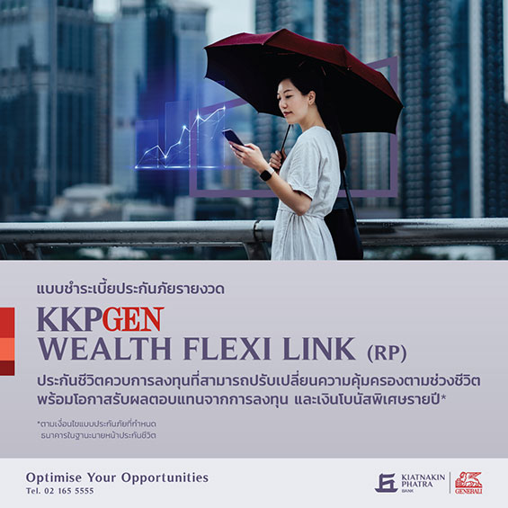 ทั้งนี้ ลูกค้าสามารถมั่นใจได้ว่ากองทุนที่คัดสรรมาเพื่อ KKPGEN wealth flexi link นั้นได้ผ่านการคัดกรองมาโดยองค์ความรู้และประสบการณ์ของทั้งเกียรตินาคินภัทรและเจนเนอราลี่ที่มุ่งประโยชน์สูงสุดแก่ลูกค้า โดยได้คัดสรรกองทุนคุณภาพซึ่งมีประเภทสินทรัพย์ที่หลากหลาย โดยไม่ได้จำกัดกับ บลจ. ใดเป็นหลัก ดังนั้นจึงตอบโจทย์การลงทุนที่ดีในระยะยาว และลูกค้ายังมีโอกาสในการสร้างผลตอบแทนที่ต้องการตามระดับความเสี่ยงที่ลูกค้าพึงพอใจ อีกทั้งบริษัทฯ ยังมีการวิเคราะห์ผลการดำเนินงานของกองทุน และคัดสรรกองทุนที่น่าสนใจใหม่ๆเข้ามาเพิ่มเติมเพื่อเป็นทางเลือกให้ลูกค้าอย่างสม่ำเสมอ จึงมั่นใจได้ว่าลูกค้าจะได้รับโอกาสที่ดีที่สุดในการรับผลตอบแทนที่สูงขึ้น” นายฟิลิป กล่าว