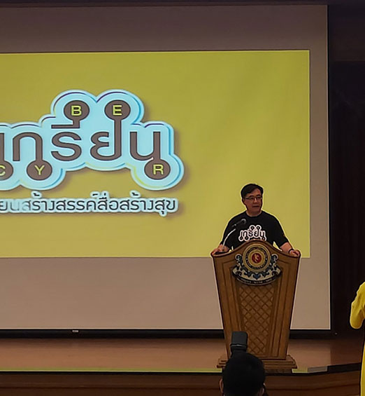 ดร.สุภาพร ศรีสัตตรัตน์ หัวหน้าหน่วยจัดการทุนโครงการเกรียนไซเบอร์เซียนสร้างสรรค์สื่อสร้างสุข ปี 2 (เกรียนไซเบอร์ฯ ปี 2) โดย สำนักงานกองทุนสนับสนุนการสร้างเสริมสุขภาพ(สสส.) ร่วมกับมหาวิทยาลัยสยาม เปิดเผยว่า ในวันนี้ ดร.พรชัย มงคลวนิช อธิการบดีมหาวิทยาลัยสยาม ให้เกียรติกล่าวเปิดงาน “การแสดงผลงานสื่อดิจิทัลและรับมอบวุฒิบัตรของโครงการย่อย” โครงการเกรียนไซเบอร์ฯ ปี 2