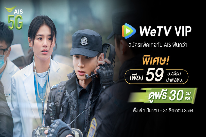 ในฐานะผู้ให้บริการ VDO Streaming Service Provider ส่งแพ็คเกจ WeTV VIP ทั้งแบบรายเดือน รายสัปดาห์ และรายวันในราคาสุดคุ้มส่งตรงถึงมือลูกค้าเอไอเอสทั้งในระบบเติมเงิน และรายเดือน ให้เหล่าคอซีรีส์ได้รับชมออริจินัล คอนเทนต์คุณภาพดี และวาไรตี้ดังจากทั่วทั้งเอเชีย ดูได้ทุกที่...ทุกเวลา แบบถูกลิขสิทธิ์ ดูฟรี แบบไม่มีโฆษณาคั่น เริ่มสมัครได้แล้วตั้งแต่วันนี้เป็นต้นไป