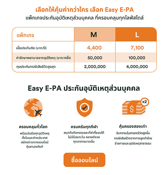 พิเศษ! ซื้อประกันอุบัติเหตุ Easy E-PA แพ็กเกจ M หรือ L ตั้งแต่วันนี้ – 10 เมษายน 2564 รับทันที ส่วนลดสูงสุด 700 บาท เมื่อซื้อเซิร์ฟสเก็ตที่ร้าน Preduce Skateshop