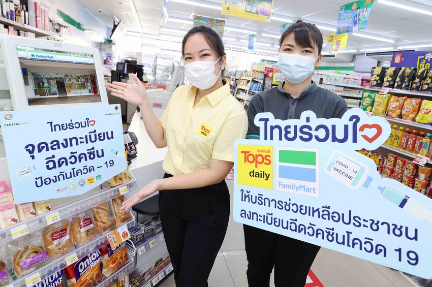 ภายใต้โครงการ “ไทยร่วมใจ กรุงเทพปลอดภัย” จะเปิดให้ผู้ที่อาศัยอยู่ในกรุงเทพมหานคร ที่มีอายุตั้งแต่ 18-59 ปี ซึ่งไม่ได้เป็น 7 กลุ่มโรคเสี่ยง ลงทะเบียนจองฉีดวัคซีน โดยพนักงานท็อปส์ เดลี่ และ แฟมิลี่มาร์ท ทั้ง 316 สาขาในกรุงเทพมหานคร พร้อมอาสาลงทะเบียนจองสิทธิ์ฉีดวัคซีนโควิด-19 ให้กับประชาชน ผ่านเว็บไซต์ www.ไทยร่วมใจ.com เริ่มตั้งแต่วันที่ 27 พฤษภาคม 2564 เวลา 12.00 น. เป็นต้นไป ลงทะเบียนสะดวกสบายเราช่วยคุณเอง พนักงานจะให้บริการช่วยลงทะเบียนในระบบ เพียงแสดงบัตรประจำตัวประชาชนพร้อมมาลงทะเบียนด้วยตนเอง ในช่วงเวลา 06.00 – 22.00 น. หลังจากนั้นระบบจะส่ง SMS แจ้งผลการจัดสรรวัคซีน และนัดหมายวัน เวลา สถานที่ฉีดวัคซีน ให้กับผู้ลงทะเบียน
