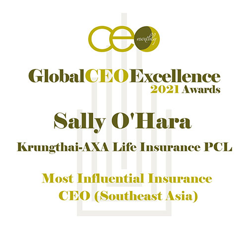 หรือ ‘Most Influential Insurance CEO (Southeast Asia) จาก Global CEO Excellence Awards 2021 รางวัลดังกล่าวมอบให้แก่ผู้บริหารที่มีผลงานโดดเด่น และเป็นตัวแทนของความมุ่งมั่นต่อภารกิจ และมีคุณค่าในธุรกิจประกัน โดยรางวัลดังกล่าวถือเป็นอีกหนึ่งความภาคภูมิใจของบริษัทฯ ซึ่งสะท้อนให้เห็นว่าผู้นำสูงสุดของบริษัทฯ เป็นผู้นำที่มีความเชื่อมั่นในตนเอง ซึ่งรางวัลแห่งความภาคภูมิใจนี้ ได้คัดเลือกผู้บริหารระดับ CEO ที่มีความรู้ความสามารถจาก 11 ประเทศในภูมิภาคเอเซียตะวันออกเฉียงใต้
