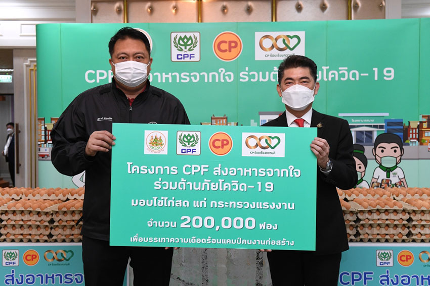 กระทรวงฯ ขอขอบคุณซีพีเอฟเป็นอย่างมาก ที่ช่วยเหลือทุกครั้ง ตั้งแต่การมอบอาหารให้บุคลากรทางการแพทย์และเจ้าหน้าที่ที่ให้บริการฉีดวัคซีนแก่ผู้ประกันตน ม.33 ในศูนย์ฉีดวัคซีน ทั่ว กทม. และยังนำไข่ไก่มามอบ เพื่อบรรเทาความเดือดร้อนและเป็นขวัญกำลังใจแก่พี่น้องผู้ใช้แรงงานอีกครั้ง ซึ่งหน่วยงานที่เกี่ยวข้องจะจัดสรรอย่างเหมาะสม สู่แคมป์คนงานโดยตรง