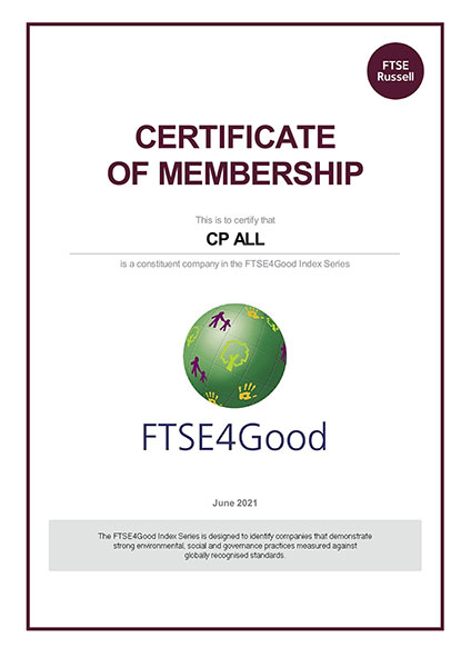 นายธานินทร์ บูรณมานิต ประธานเจ้าหน้าที่บริหาร บมจ.ซีพี ออลล์ กล่าวว่า การได้รับเกียรติให้เข้าเป็นสมาชิก FTSE4Good Index ตั้งแต่ปี 2561 ไม่เพียงเป็นความภาคภูมิใจของทุกคนที่ซีพี ออลล์ แต่ยังถือเป็นเครื่องพิสูจน์ความมุ่งมั่นของบริษัทในการเติบโตอย่างยั่งยืนไปพร้อมกับสังคม โดยคำนึงถึงผู้มีส่วนได้ส่วนเสียทุกกลุ่ม ตามปณิธานองค์กร ร่วมสร้างสรรค์และแบ่งปันโอกาสให้ทุกคน ซึ่ง ซีพี ออลล์ให้คำมั่นจะพัฒนาอย่างต่อเนื่องไม่หยุดยั้ง