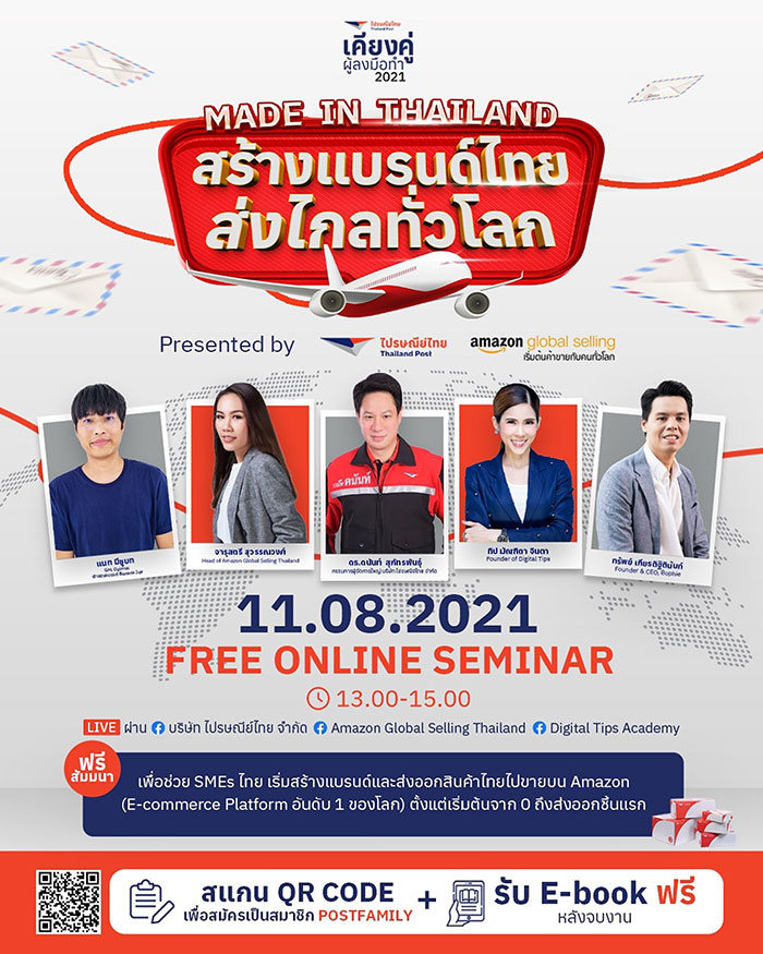 จัดสัมมนา “Made in Thailand สร้างแบรนด์ไทย ส่งไกลทั่วโลก” เพื่อส่งต่อประสบการณ์จากผู้เชี่ยวชาญให้กับผู้ประกอบธุรกิจในการต่อยอด - ส่งออกสินค้าไปขายบน แพลตฟอร์ม AMAZON ตั้งแต่เริ่มจาก 0 ไปจนถึงการส่งออกสินค้าชิ้นแรก