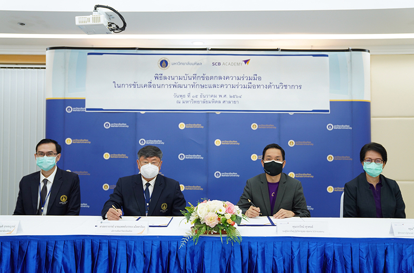 ศาสตราจารย์ นายแพทย์บรรจง มไหสวริยะ อธิการบดีมหาวิทยาลัยมหิดล กล่าวว่า “มหาวิทยาลัยมหิดลเล็งเห็นความสำคัญของการพัฒนาความรู้และทักษะด้านการเป็นผู้ประกอบการ (Entrepreneurship) ให้แก่นักศึกษาในระดับปริญญาตรี ระดับบัณฑิตศึกษา และบุคลากรของมหาวิทยาลัยมหิดล เพื่อให้เกิดการสร้างการรับรู้ การมีส่วนร่วมของนักศึกษา และบุคลากรของมหาวิทยาลัย รวมถึงสร้างกำลังคนที่มีคุณภาพและศักยภาพสูง และยังเป็นการยกระดับการพัฒนาหลักสูตร ในการประยุกต์การจัดการศึกษาแบบ Micro Credential หรือการจัดการศึกษาเชิงบูรณาการให้ก้าวทันต่อการทำธุรกิจที่เปลี่ยนแปลงไปในปัจจุบัน ทั้งนี้ SCB Academy มีประสบการณ์ในการให้บริการกับกลุ่มนวัตกร และบุคลากรที่ค่อนข้างหลากหลายของธนาคารในด้านการออกแบบและพัฒนาหลักสูตรให้แก่หน่วยงานต่าง ๆ จนเป็นที่ยอมรับในวงการ ซึ่งมหาวิทยาลัยมหิดลหวังว่า ความร่วมมือในครั้งนี้ จะช่วยสร้างบุคลากรรุ่นใหม่ให้เป็นผู้ประกอบการมืออาชีพ และก้าวทันต่อการเปลี่ยนแปลงในโลกดิจิทัล”