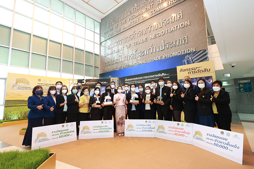 และการประกวดครั้งนี้ประสบความสำเร็จและได้ผลชัดเจน ได้ข้าวพันธุ์ใหม่เพิ่มขึ้น 6 พันธุ์ ซึ่งเป็นผลสัมฤทธิ์ของการเดินหน้าตามยุทธศาสตร์ข้าวไทย ที่กำหนดไว้ว่าภายใน 5 ปีต้องได้ 12 พันธุ์ เพียงปี 2564-2565 ได้มาแล้ว 6 พันธุ์ และจากนี้ตั้งเป้าว่าจะเดินหน้าเพื่อนำไปสู่การปลูกในแปลงเกษตรกรเพื่อการพาณิชย์ได้จริง และต้องรีบไปขึ้นทะเบียนพันธุ์พืชใหม่ที่กรมวิชาการเกษตร ตั้งเป้าว่าไม่เกิน 1 ปี ต้องให้ข้าวพันธุ์ใหม่ลงสู่แปลงนาเกษตรเพื่อการพาณิชย์ได้และเป็นการเพิ่มตัวเลขการส่งออกข้าวต่อไปในอนาคต มีสินค้าไปแข่งกับคู่แข่งเพิ่มขึ้นอีก 6 ตัวที่มีศักยภาพและมีคุณภาพ เพื่อเพิ่มจำนวนเมล็ดพันธุ์ลงไปปลูกจริงในแปลงนาเกษตรกร แล้วให้สมาคมผู้ส่งออกข้าวไทยนำไปแข่งในตลาดโลกได้โดยเร็วที่สุด และในส่วนของกระทรวงพาณิชย์ ใช้หลัก “รัฐหนุนเอกชนนำ” ภาคเอกชน เกษตรกรต้องเป็นตัวนำภายใต้การสนับสนุนอย่างเข้มแข็งของรัฐบาล กระทรวงเกษตรฯ กระทรวงพาณิชย์และหน่วยงานที่เกี่ยวข้องและขอมอบนโยบายของกระทรวงพาณิชย์ดังนี้
