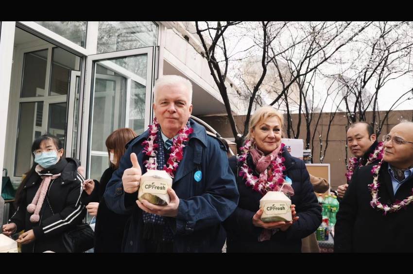 นอกจากนี้ ซีพียังมอบ “ทุเรียน CPFresh” ให้แก่สถานเอกอัครราชทูตฯ เพื่อเป็นของขวัญมอบให้กับแขกของรัฐบาลจีน และภายในงาน มีการจัดโปรโมทสินค้า “ทุเรียน CPFresh” ที่จะนำเข้าในเดือนพฤษภาคม 2565 ซึ่งได้รับเสียงตอบรับและความสนใจจากผู้ร่วมงานเป็นจำนวนมาก.