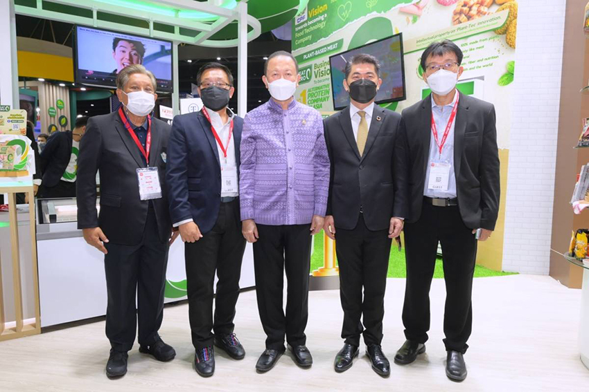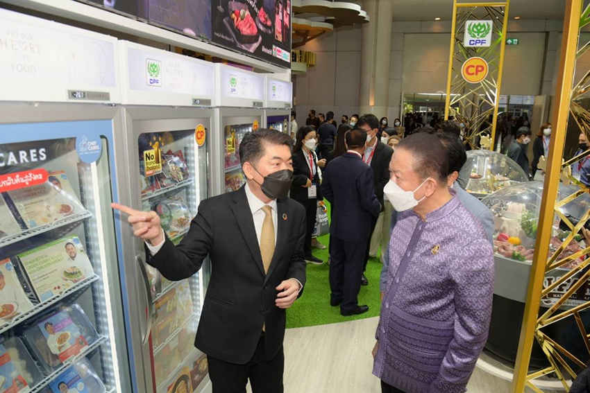 ภายในบูธ รองนายกฯ เดินชมสินค้าและผลิตภัณฑ์คุณภาพ ไฮไลท์คือ “MEAT ZERO” เนื้อจากพืช นวัตกรรม PLANT-TEC ที่ CPF RD Center พัฒนาร่วมกับศูนย์วิจัยชั้นนำระดับโลก เป็นระยะเวลามากกว่า 4 ปี เพื่อให้ผลิตภัณฑ์มีรสสัมผัสเสมือนเนื้อสัตว์จริง ทั้งลักษณะและกลิ่น คุณค่าทางโภชนาการ รวมถึงสินค้าเนื้อสัตว์ ทั้งนวัตกรรมไก่เบญจา และหมูชีวา และสินค้าในกลุ่ม “CP SELECTION” ที่นำนวัตกรรมโปรไบโอติกมาใช้ในอาหารสัตว์ เพื่อยกระดับความปลอดภัยให้สินค้า ไม่ใช้ยาปฏิชีวนะ