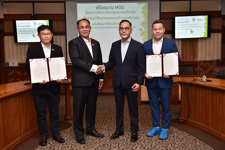 ผู้นำด้านการสนับสนุน พัฒนา และต่อยอดด้านเกษตรอินทรีย์ให้เป็นระบบการเกษตรที่ยั่งยืนและมั่นคง พลิกโฉมวงการเกษตรกรรมไทย จับมือการยาสูบแห่งประเทศไทย กระทรวงการคลัง นำร่องจัดทำ “โครงการพัฒนาใบยาสูบแบบออร์แกนิค เพื่อแปรรูปเป็นสารอาหารออกฤทธิ์ทางเภสัชกรรมและพัฒนาเป็นผลิตภัณฑ์ใหม่” เพื่อร่วมพัฒนาศักยภาพใบยาสูบให้เป็นวัตถุดิบเกษตรอินทรีย์คุณภาพสูง ผนวกการปลูกพืชผักและสมุนไพรออร์แกนิคเสริมในพื้นที่ สำหรับแปรรูปเป็นวัตถุดิบคุณภาพสูงสำหรับเภสัชกรรม และพัฒนาเป็นผลิตภัณฑ์ออร์แกนิคต่างๆ รวมทั้งเพื่อร่วมพัฒนาเครือข่ายวิสาหกิจชุมชน และยกระดับคุณภาพชีวิตเกษตรกรผู้ปลูกยาสูบไทย ตั้งเป้าสร้างรายได้เพิ่มสูงขึ้นถึง 5 เท่า