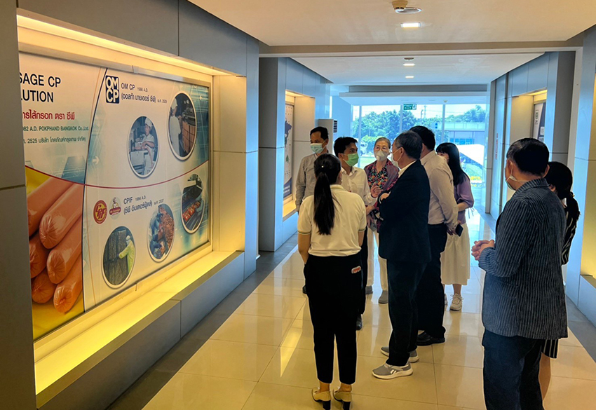 นายเกริกพันธุ์ ดีประเสริฐ นำเสนอภาพรวมธุรกิจของเครือซีพีและซีพีเอฟ ก่อนนำคณะเข้าชมไลน์การผลิตไส้กรอกคุณภาพและอาหารพร้อมทานของโรงงาน ที่มีกระบวนการผลิตที่ทันสมัยด้วยเทคโนโลยีมาตรฐานระดับโลก เพื่อผลิตอาหารปลอดภัยสู่ผู้บริโภค ด้วยระบบการผลิตอัตโนมัติแบบต่อเนื่อง (Completely Automation Line) ที่โรงงานอาหารสำเร็จรูปซีพีเอฟ หนองจอก ใช้เป็นแห่งแรกในภูมิภาคเอเชีย สร้างความประทับใจแก่คณะะวิจัยความสัมพันธ์จีน-ไทย เป็นอย่างยิ่ง
