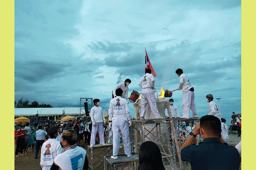 ทั้งนี้ พลอากาศเอก ชลิต พุกผาสุข องคมนตรี ให้เกียรติเป็นประธานในพิธี พร้อมด้วย พลตรี ดร.วรวุฒิ แสงทอง รองผู้อำนวยการศูนย์ประสานการปฏิบัติที่ 1 กอ.รมน. นายสราวุธ ลิ้มอรุณรักษ์ นายก อบจ.ประจวบคีรีขันธ์ ดร.มังกรแก้ว ดรุณศิลป์ ผอ.เขตพื้นที่การศึกษาประถมศึกษาประจวบคีรีขันธ์ และดร.ดนัย จันทร์เจ้าฉาย ประธานมูลนิธิธรรมดี และพลอากาศตรีหญิงทิพย์วิมล ทองอ่อน ผู้ทรงคุณวุฒิและที่ปรึกษา มูลนิธิศรีสัตตบูรณ์ ก่อนเริ่มพิธีเททองรูปหล่อขุนรองปลัดชู ผู้จัดงาน ได้มอบให้ ท่านพรามหณ์สุขีนันท์ บุญพาศรีนาฤทธิ์ ประกอบพิธีบวงสรวงเทพยดาพุทธาเทวาภิเษกเททองรูปหล่อเหมือนขุนรองปลัดชู