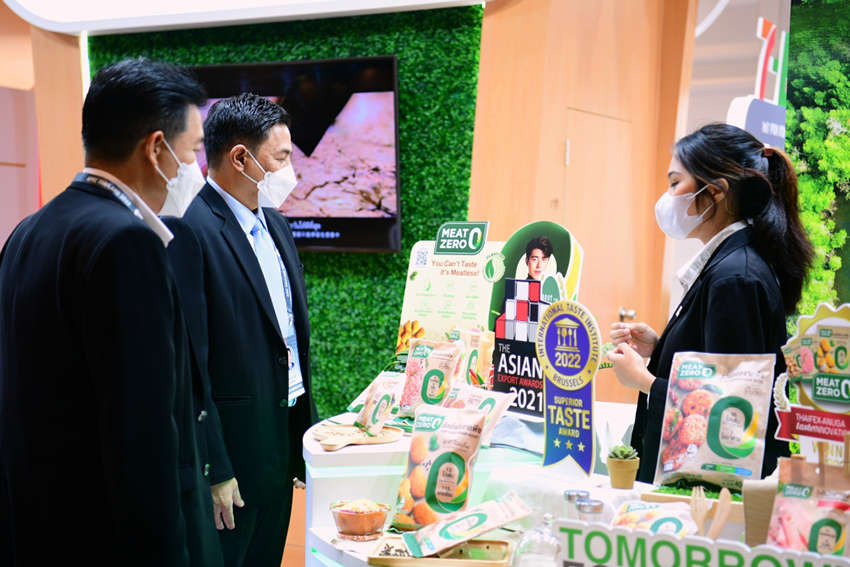 นอกจากนี้ ในการประชุมผู้นำภาคเอกชนของเอเปค หรือ APEC CEO Summit ซึ่งมีผู้นำภาคเอกชนจากหลายเขตเศรษฐกิจของโลก ร่วมการรับรองอาหารเย็นภายในงาน APEC CEO Summit Reception ณ ไอคอนสยาม ซีพีเอฟ ได้นำสองผลิตภัณฑ์ยั่งยืน ได้แก่ เนื้อจากพืช Meat Zero และ ไก่เบญจา แบรนด์ U FARM ซึ่งมีห่วงโซ่การผลิตภายใต้เศรษฐกิจ BCG ให้ผู้เข้าร่วมประชุมได้ลิ้มลอง ตอกย้ำคุณภาพอาหารที่ลดการปล่อยก๊าซเรือนกระจก และมีรสชาติความอร่อยเป็นเลิศระดับโลก การันตีรางวัล “สุดยอดรสชาติอาหารระดับโลก ประจำปี 2022” หรือ Superior Taste Award 2022 โดยสถาบันชั้นนำของโลก International Taste Institute ณ กรุงบรัสเซลล์ ประเทศเบลเยี่ยม ด้วยเมนูพิเศษ ได้แก่ ประเภทวีแกน อาทิ นักเก็ต เกี๊ยวซ่า โบโลน่า และ ข้าวตังมัสมั่น รวมถึง ส้มตำไก่ย่าง ข้าวซอยไก่ และข้าวตังหน้าไก่ นับเป็นอีกความภาคภูมิใจของคนไทยและบริษัทไทยที่ได้ร่วมแนะนำ Soft Power ด้านอาหาร ด้วยผลิตภัณฑ์ของไทยให้นานาชาติได้รู้จัก