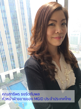 คุณสุทธิพร ธงรัตกัมพล หัวหน้าฝ่ายขายของ MGID ประจำประเทศไทย กล่าวว่า "ในขณะที่นักการตลาดดิจิทัลยังคงใช้การมองเห็น อย่างตั้งใจในการแสดงตัวโฆษณาเป็นมาตรฐานในการชี้วัด เราตื่นเต้นที่จะได้นำเสนอรูปแบบโฆษณาที่ล้ำหน้า ที่จะช่วยให้ผู้โฆษณามี ความโดดเด่นเหนือคู่แข่ง ด้วยงบประมาณในจำนวนที่คุ้มค่า อย่างที่ไม่เคยมีมาก่อน โฆษณาแบบ Rich Media ของเราจะช่วยให้ มั่นใจได้ว่า รูปแบบการโฆษณาแบบนี้จะสร้างการมองเห็นที่ตรงแก่กลุ่มเป้าหมาย ลดการใช้จ่ายที่สูญเปล่าและช่วยเพิ่ม ROI ทำให้อัตรา การมีส่วนร่วมสูงกว่าโฆษณาแบบภาพนิ่งถึงหกเท่า ซึ่งโฆษณาเหล่านี้มีประสิทธิภาพในการดึงดูดความสนใจของผู้ชมมากกว่า และในท้าย ที่สุดจะช่วยเพิ่มมูลค่าการมองเห็นโฆษณาให้มีประสิทธิภาพมากยิ่งขึ้น"