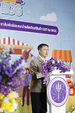 “วันนี้มีสินค้าหลากหลายจากทุกตำบล ไม่ว่าจะเป็นเครื่องจักรสาน ผ้าทอสวยงามและมีเอกลักษณ์ อาหารสำเร็จรูปที่มีเลข อย. (องค์การอาหารและยา) มีวันจดแจ้ง วันผลิต วันหมดอายุ ชุดเจน ทำให้ผู้บริโภคมีความเชื่อมั่น เชื่อใจ เมื่อสินค้าจำหน่ายได้ก็เกิดการผลิตอย่างต่อเนื่อง เกิดการจ้างงานและสร้างผู้ผลิตที่เป็นเด็กรุ่นใหม่ให้เกิดขึ้นในชุมชน หลังจากนี้ อว. และมหาวิทยาลัยในฐานะ อว.ส่วนหน้า จะเน้นส่งเสริมการตลาดและขายสินค้าทั้ง online/offline ผลักดันให้จำหน่ายได้ทั้งในและต่างประเทศ โดย อว. เป็นผู้พัฒนาระบบ ในการเชื่อมต่อกับแพลตฟอร์ม (Platform) จัดทำข้อมูล Thailand Community Data (TCD) ให้สมบูรณ์ครบทุกพื้นที่เชื่อมั่นว่าโครงการ U2T for BCG สามารถขับเคลื่อนเศรษฐกิจระดับชุมชนได้จนถึงระดับประเทศ ด้วยคุณภาพของสินค้าที่ได้รับการพัฒนาแล้วอย่างยั่งยืน”